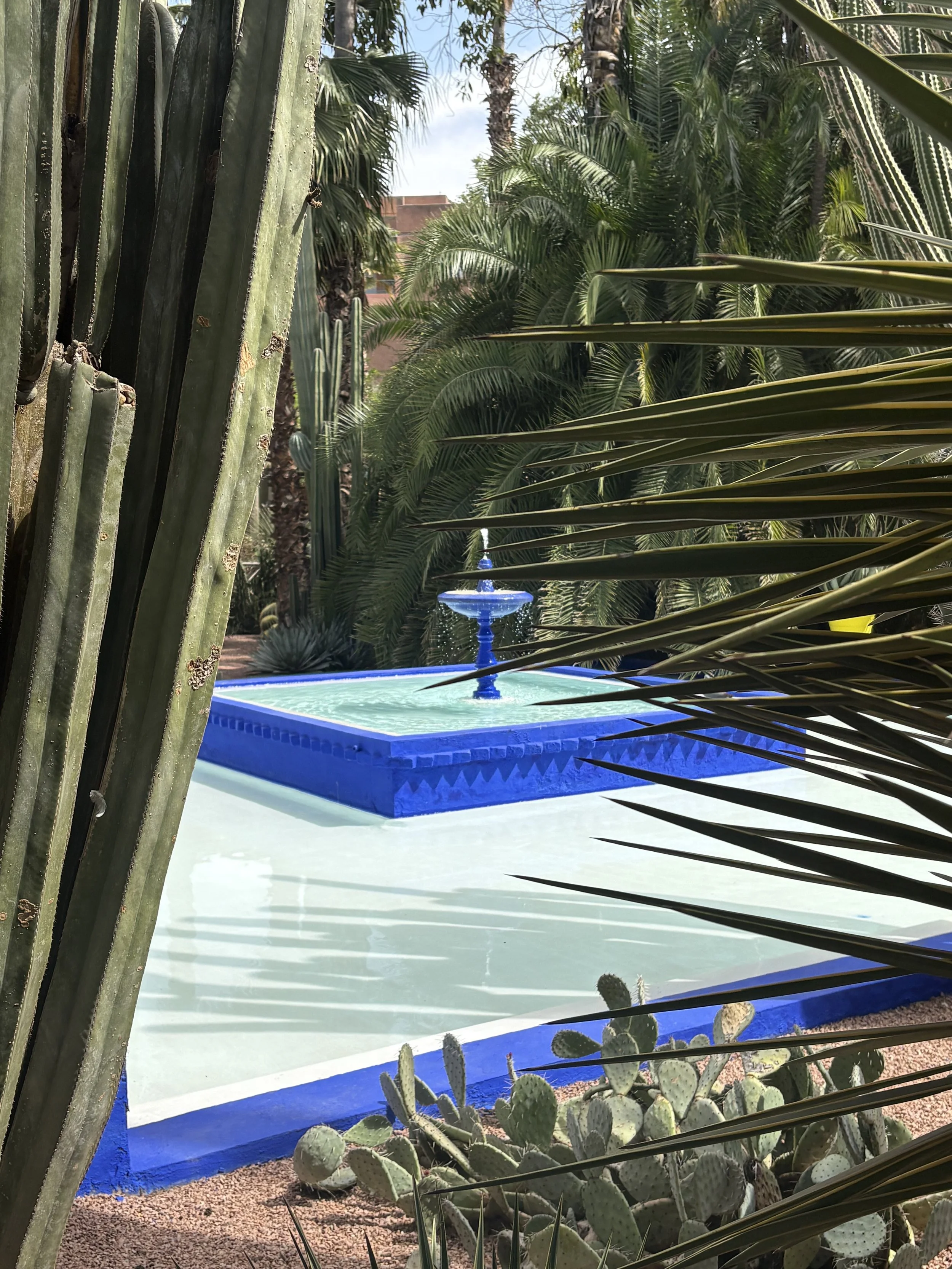 We also visited the Jardin Majorelle — the legendary gardens created by Jacques Majorelle and later restored by Yves Saint Laurent. The cobalt blue of the buildings against the vivid greenery is one of those colour combinations that stays with you long after you've left. It's a masterclass in how bold, unexpected colour choices can feel completely right in the right context.